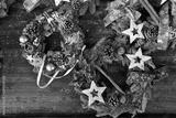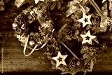 weihnachtlicher türkranz mit sternen vor dunklem hintergrund