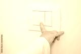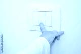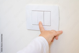 child little boy turning on the white light-switch with his finger of little hand, new generation