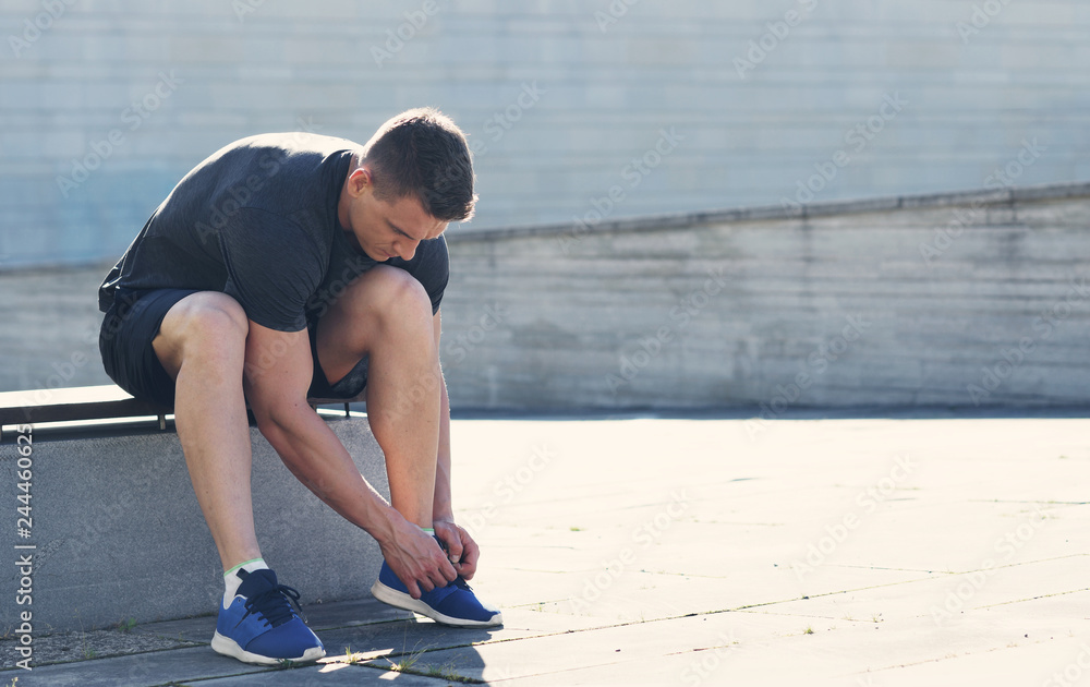 Young and sporty man training outdoor in sportswear. Sport, health, athletics.