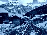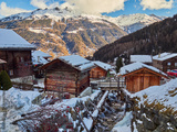 Beautiful traditional wooden houses in the streets of the alpine village Grimentz, Switzerland, in the canton Valais, municipality Anniviers