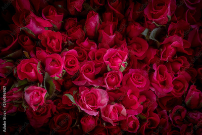 Pink roses pattern with dewdrops on petals, Love and Valentine concept
