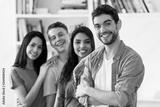 Lachender spanischer Jugendlicher mit Freunden in Reihe