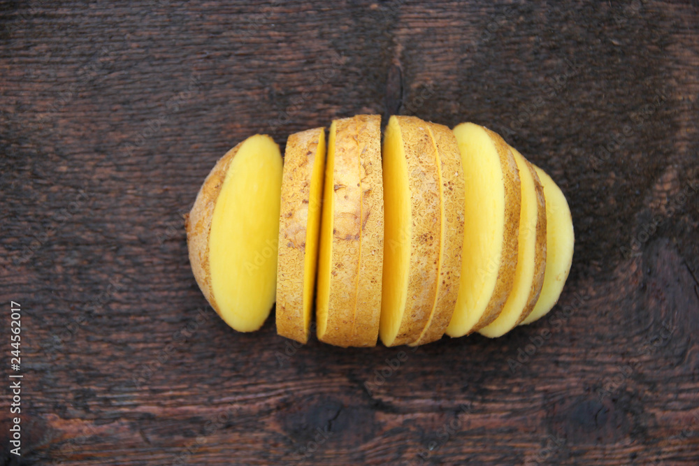 Fresh potatoes on a wooden background