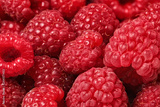 Closeup of raspberries, very detailed - fine hairs on fruit visible