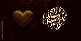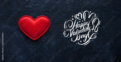 Valentines Day card with red hearts and Happy Valentine's Day hand lettering on black background. 14 February Valentines day of love.