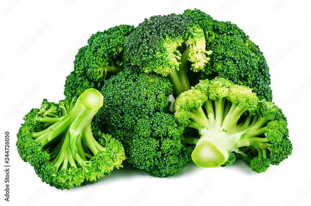 heap of raw broccoli on white