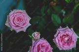 Pink roses in the morning garden.Dark green tone.Do not focus on objects.