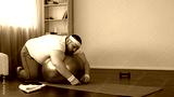 Chubby man resting after workout, lying on fitness ball, desire to lose weight