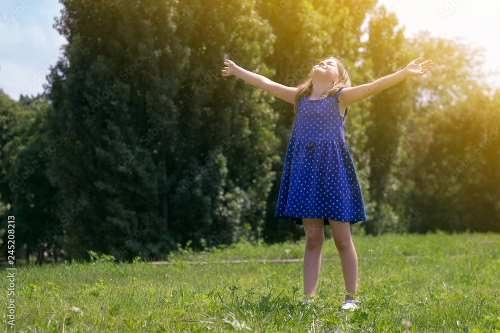 Little girl in the park with her arms open; life concept