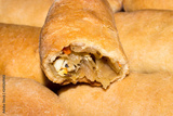 Homemade pies with a golden crust.Pies with heat from the heat.Pies with filling background.