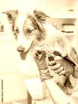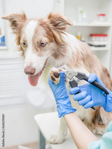 Close up veterinarian cutting dog toenails