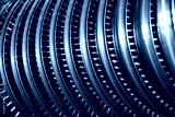 Fragments of a powerful electric turbine. Black and white photo