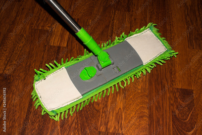 Microfiber mop for wet cleaning.Wet cleaning of laminate flooring.