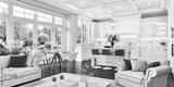 Luxurious white kitchen and living room in a big house