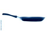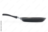 Black frying pan isolated on white with clipping path