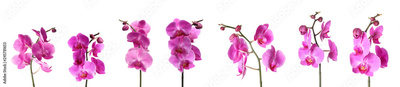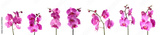Set of beautiful purple orchid phalaenopsis flowers on white background