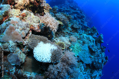 Bleached coral underwater in the Great Barrier Reef