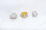 concept of whole egg, yolk hidden under the shell and broken egg without yolk on an isolated background