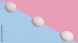 eggs laid out in a row diagonally on an isolated background Easter holiday concept