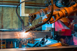 Welding robot, the process of welding a metal profile.