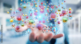 Businessman analyzing bacteria microscopic close-up 3D rendering