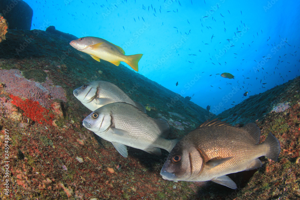 Fish on underwater coral reef