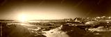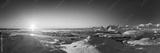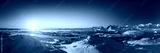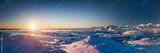 Sunset panoramic view of snow covered Antarctic land. Picturesque South Pole scenery. Beauty of the untouched nature. The wilderness landscape. Travel background. Holiday, hiking, sport, recreation