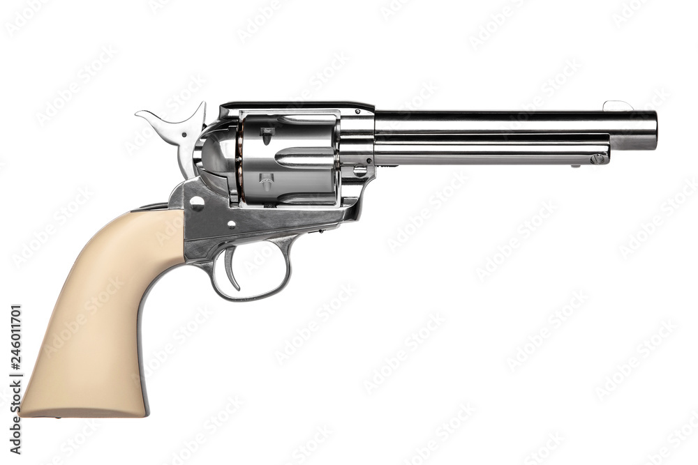 classic pistol revolver isolated on white