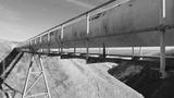 Water Pipeline on pipe bridge traversing over gully in country Australia