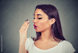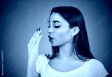 Young woman doing a hand breath test