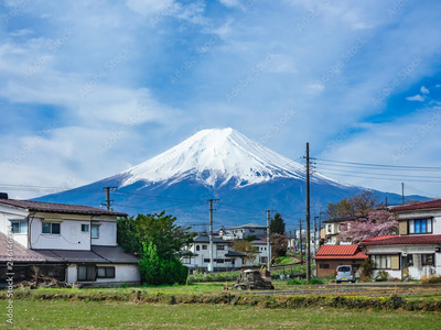 Mountain Fuji view from small village with green field Japan Landscape Summer season