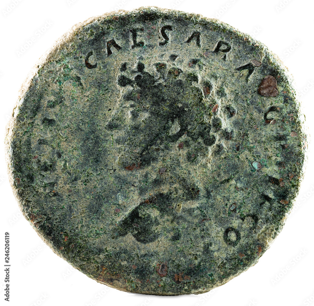 Ancient Roman bronze sertertius coin of Emperor Antoninus Pius. With the Emperor Marcus Aurelius. Reverse.