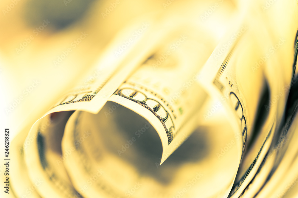 Close-up view of cash money american dollars. Finance and business concept.Shallow depth of field.