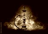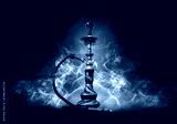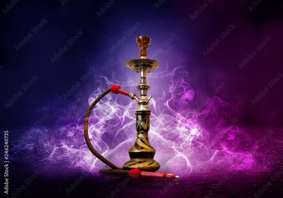 Hookah smoking on a background of abstract futuristic background, neon light, smoke.
