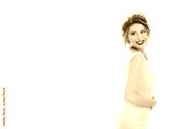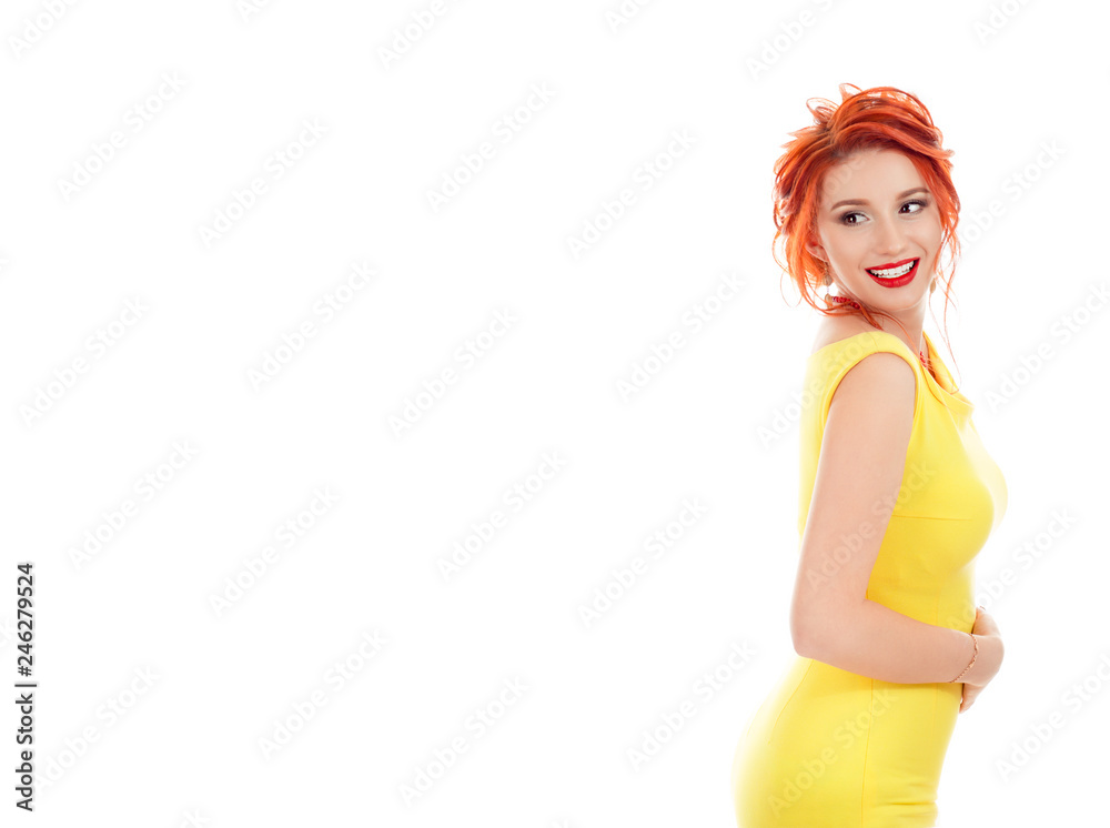 Woman looking back to the side happily