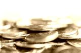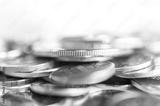 Stack of coins macro. Rows of coins for finance and banking concept. Economy trends background.
