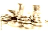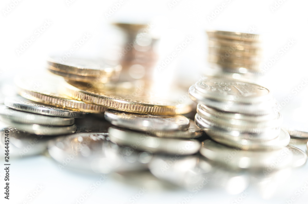 Stack of coins macro. Rows of coins for finance and banking concept. Economy trends background.