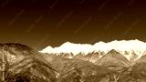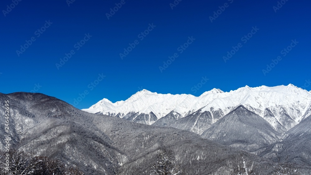 View of winter Caucasus Mountains, Krasnaya Polyana, Russia.