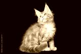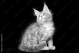 Adorable cute maine coon kitten on black background in studio, isolated.