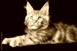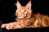 Adorable cute maine coon kitten on black background in studio, isolated.