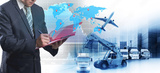 World map with logistic network distribution, Logistic and transport concept in front Industrial Container Cargo freight ship for Concept of fast or instant shipping, Online goods orders worldwide