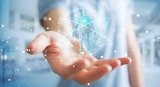 Businessman using digital x-ray human body scan interface 3D rendering
