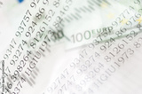 Double exposure Stock market display or forex trading graph and candlestick chart on Euro banknote.