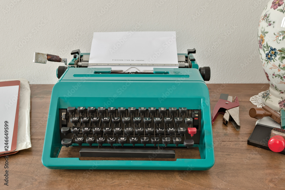 macchina da scrivere Olivetti Studio 45 appoggiato su tavolo d'epoca