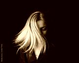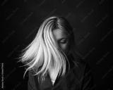 Dramatic black and white portrait of a beautiful woman on a dark background