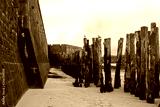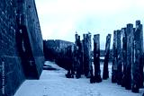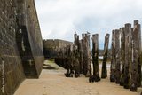 Wall and tree trunks on the beach of Saint-Malo at low tide
