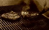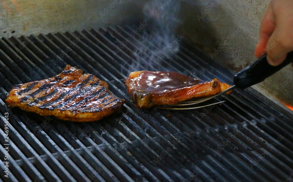 soy ginger marinated pork chop on barbecue