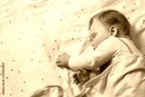 Infant baby sleeping on white sheets