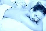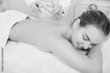 Acupuncturist inserting a needle into a female back. patient having traditional Chinese treatment using needles to restore an energy flow through specific points on the skin.