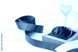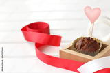 tasty greeting on the day of lovers. an open gift with a baked cupcake and a heart symbol
